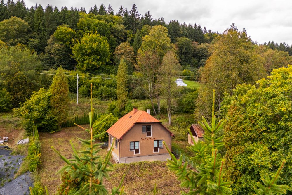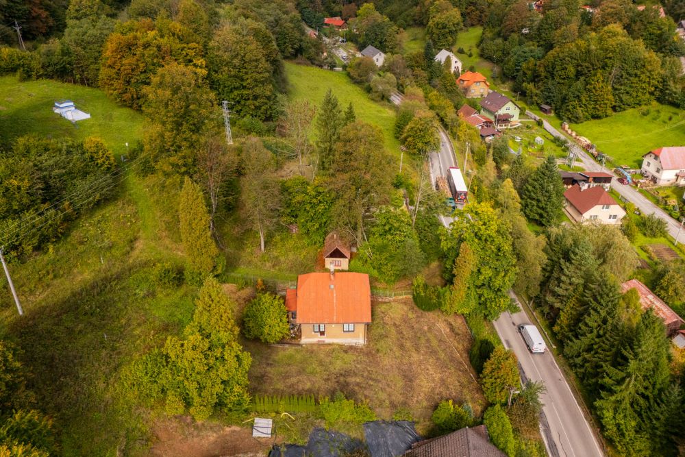 - 495 m² tvorí samostatný pozemok vedľa domu (oddelený pozemkom vo vlastníctve SR), na ktorom sa nachádza malá hospodárska budova